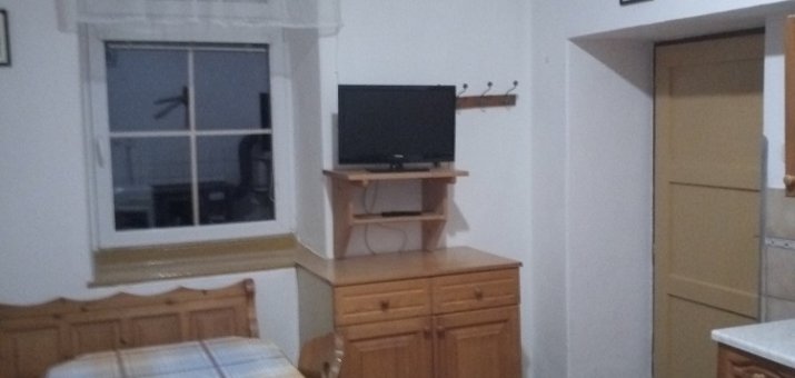 - Aartmán č. 2: V přízemí, 1 x obytná kuchyň, 1 x pokoj, plynový vařič, pec, sprcha, WC, mikrovlnka. TV